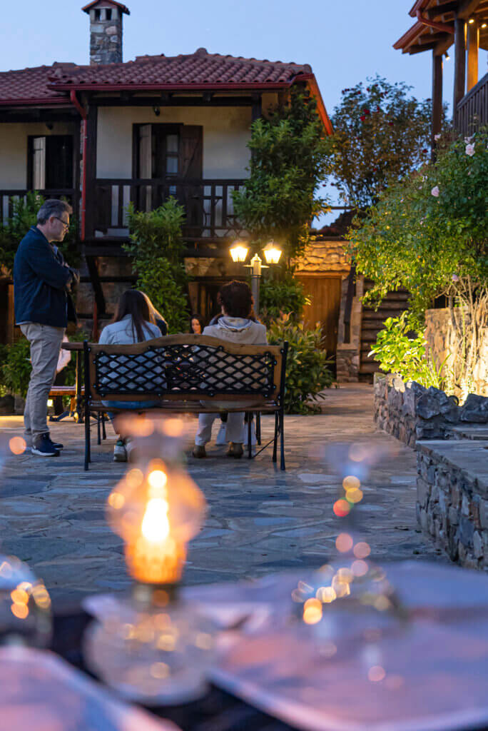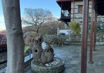 Our gathering will take place in a village of rare architectural charm, built at an altitude of 440 meters, offering cool, refreshing temperatures. From here, you’ll enjoy panoramic views of both the mountain’s majestic peak and the Aegean Sea below. Stone-paved alleys, local artisan shops, and centuries-old plane trees surround the central square, setting the stage for a lyre summer school rooted in myth, tradition, and community.